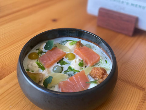 We offer a Tasting Menu of 4, 5, 6 or 7 dishes, and optional wine pairing available. The menus are always accompanied by homemade snacks and bread.